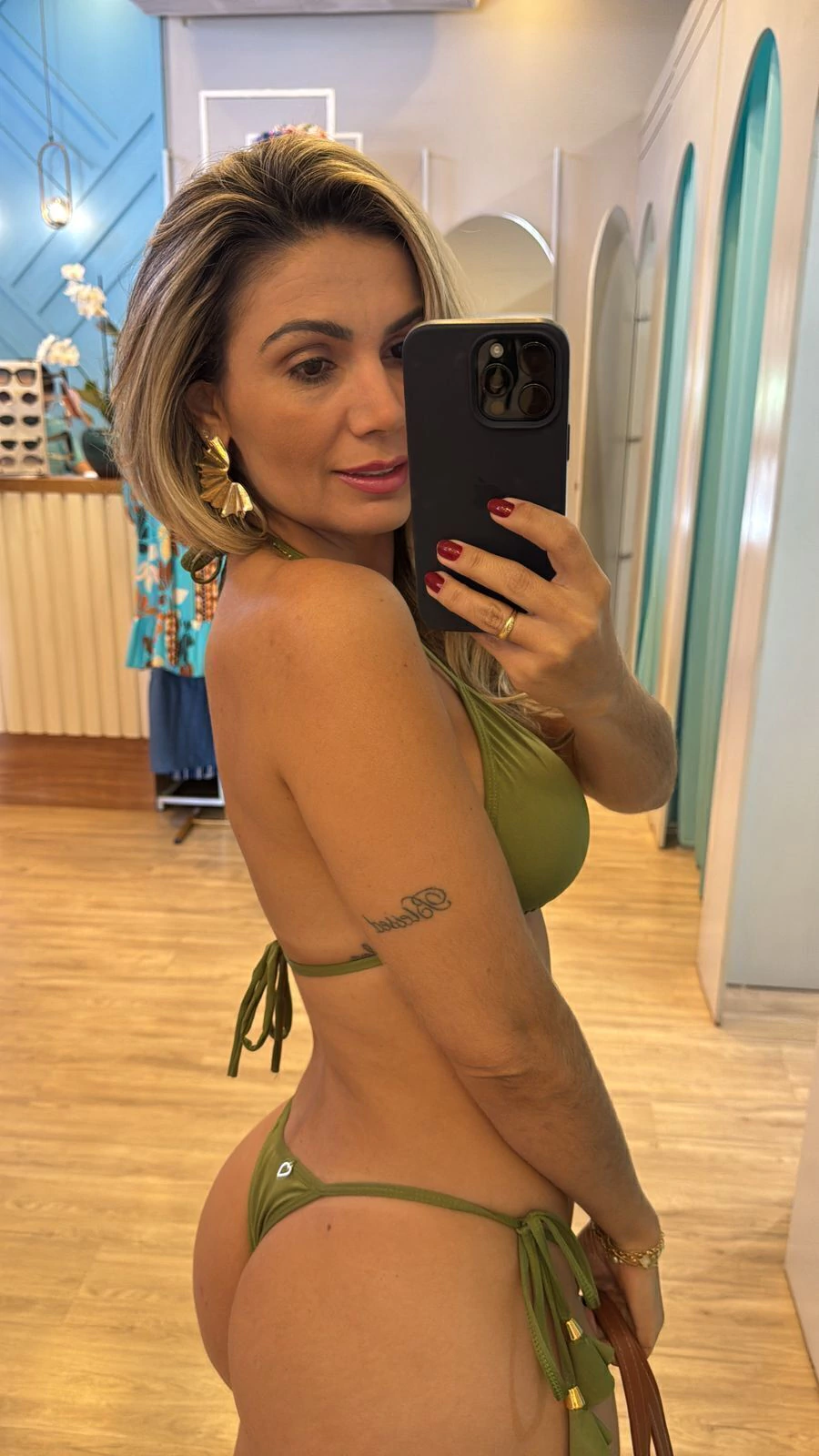 A calcinha é do tipo de amarrar, com lacinho lateral e ponteira, conferindo um charme especial e ajuste perfeito. O top cortininha é maior no busto, proporcionando mais conforto e segurança durante o uso.