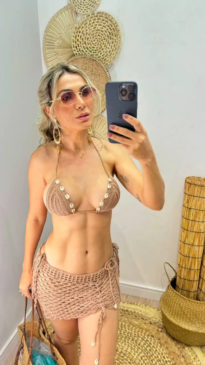 Biquíni de crochê feito a mão, pontos mais fechados, detalhes em búzios, Parte de cima cortininha, não possui bojo, Parte de baixo calcinha de amarrar modelagem fio dental no bumbum.