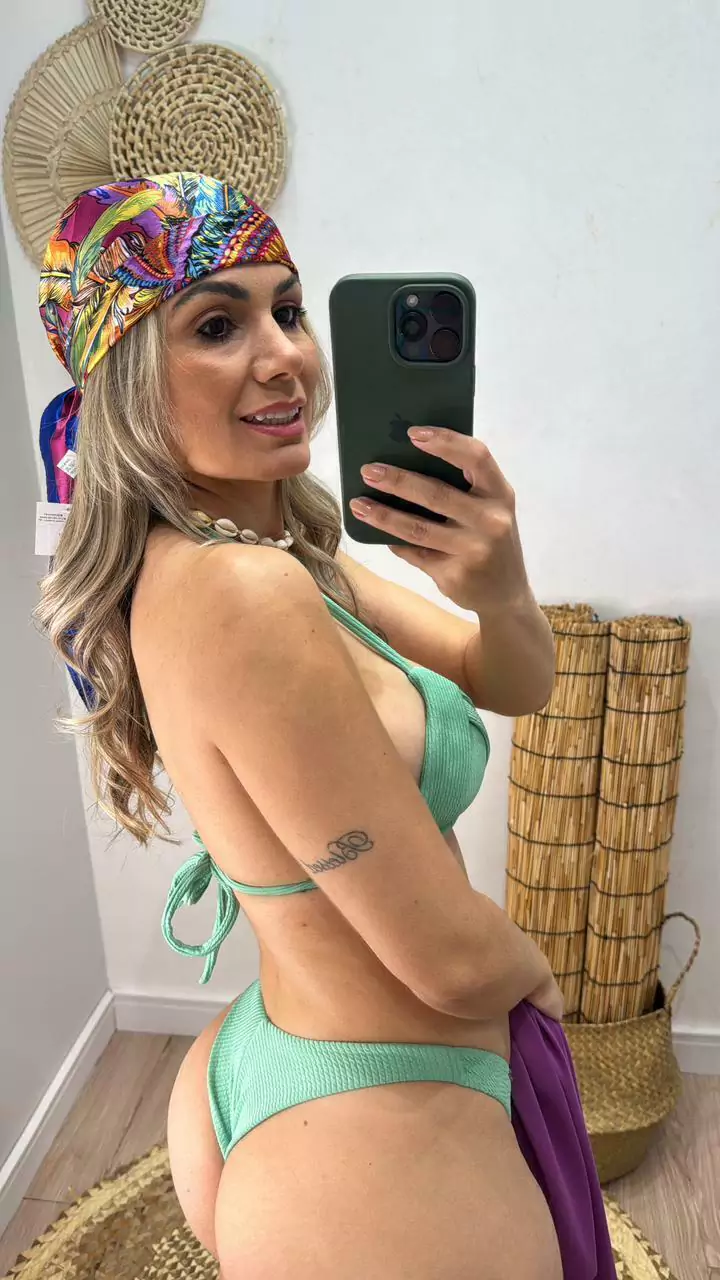 texturizado, Parte de cima modelagem cortininha, possui bojo que pode ser removido, Parte de baixo calcinha asa delta, fio duplo, modela o bumbum.