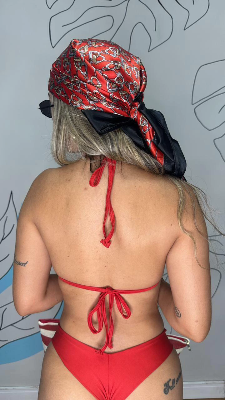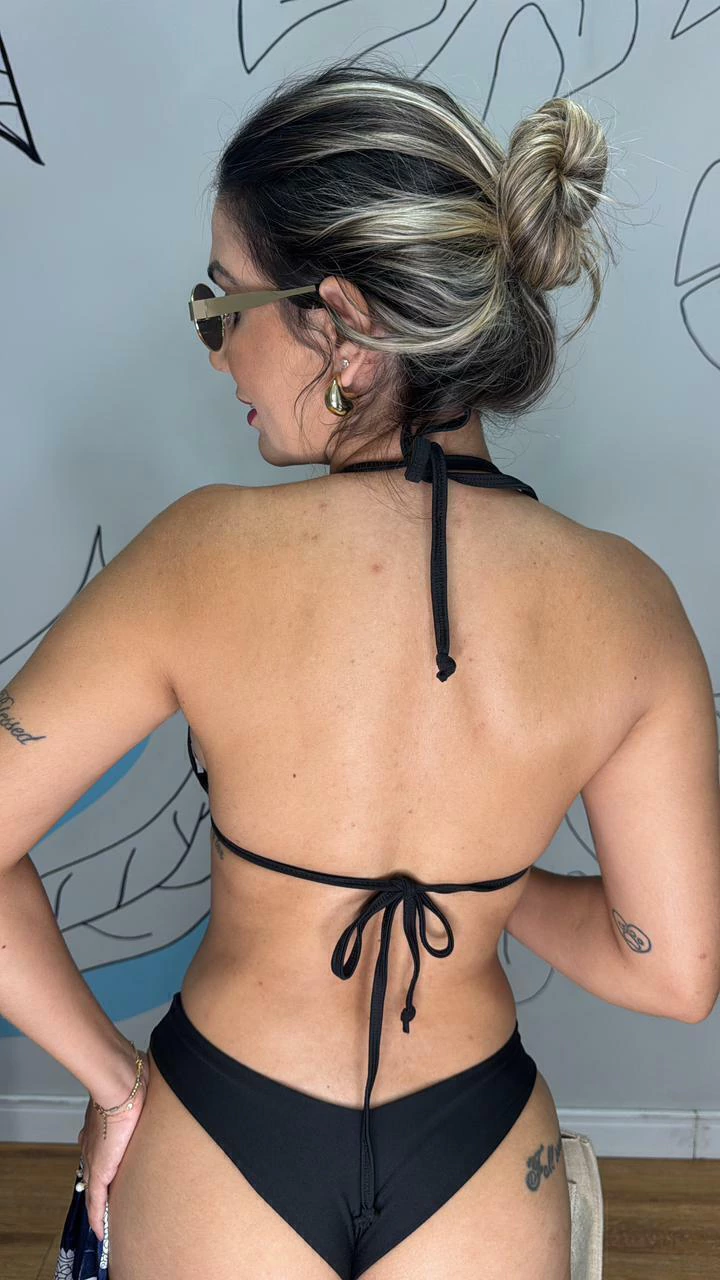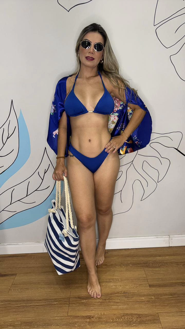 Malha suplex, Parte de cima cortininha, possui bojo podendo ser removido, Parte de baixo modelagem asa delta, fio duplo no bumbum.
