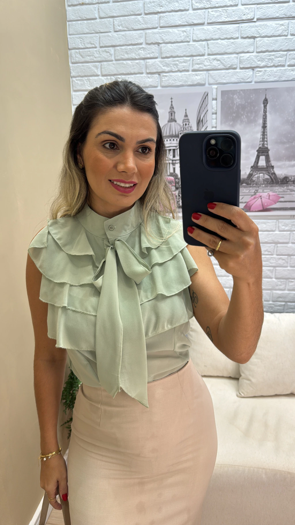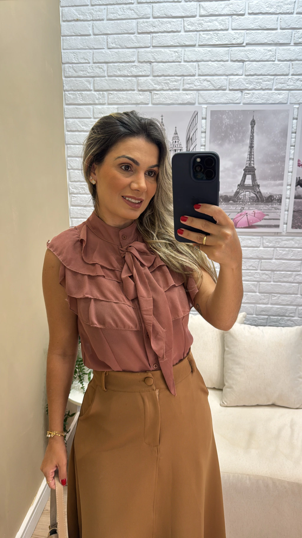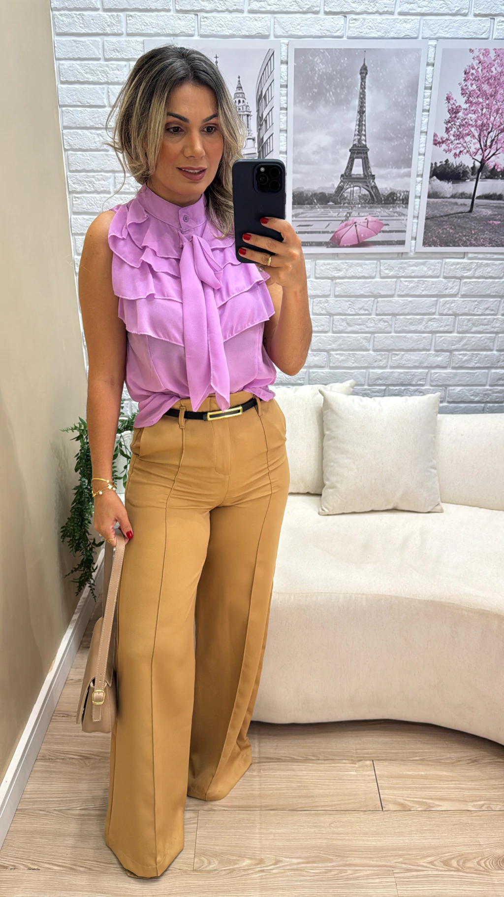 A Blusa Dura Babado é feita em chifon leve e possui detalhes delicados em babado, trazendo um toque feminino e sofisticado. Conta com botões frontais que permitem abrir e fechar com facilidade, além de uma faixa para amarração que garante ajuste perfeito à silhueta. Com modelagem regata e comprimento excelente, é ideal para diversas ocasiões, combinando conforto e estilo em uma única peça.