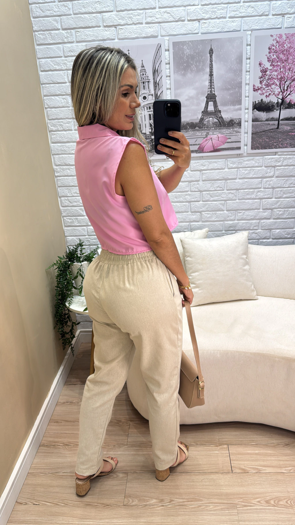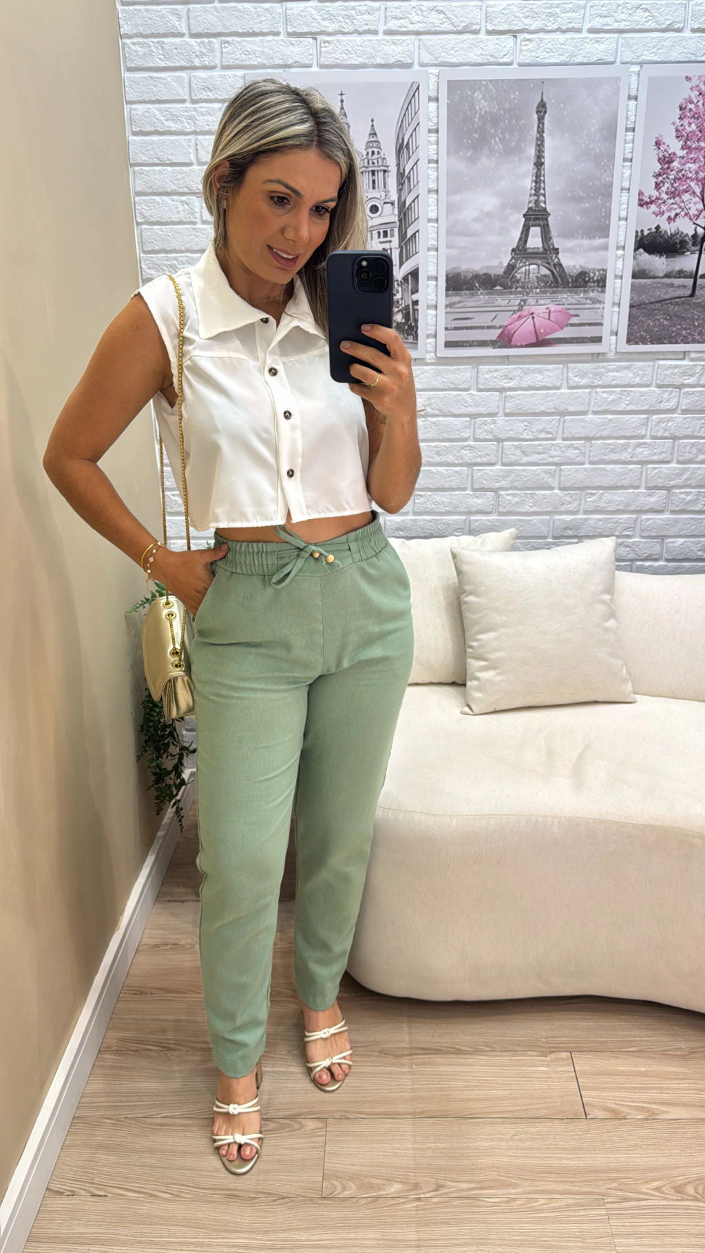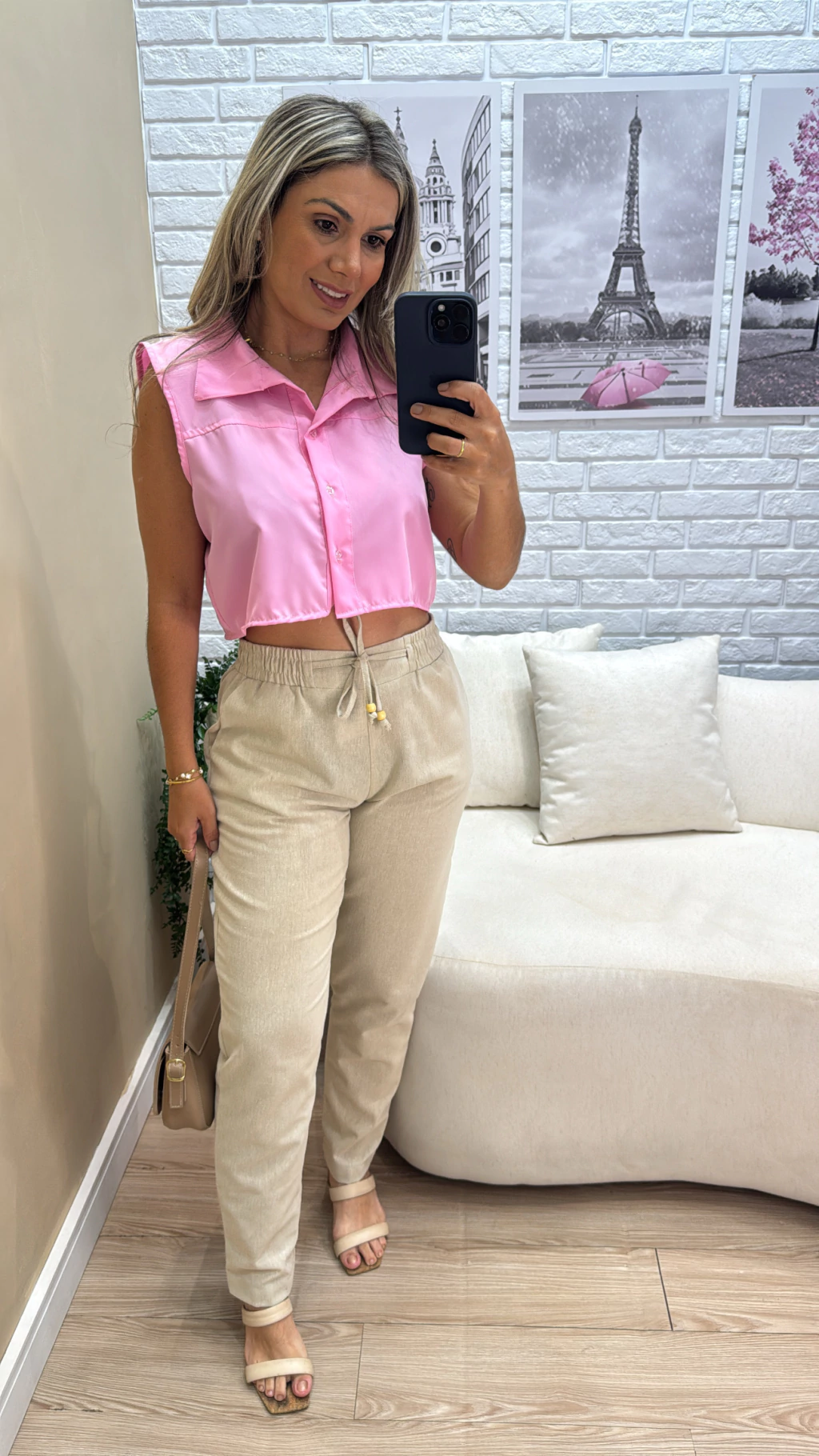 confeccionado em tecido linho crú, garantindo uma sensação suave e natural, que não pinica e oferece conforto durante todo o dia. Seu design possui cós alto com elástico e ajuste na cintura, proporcionando um caimento perfeito e conforto especial na região da barriga e cintura.