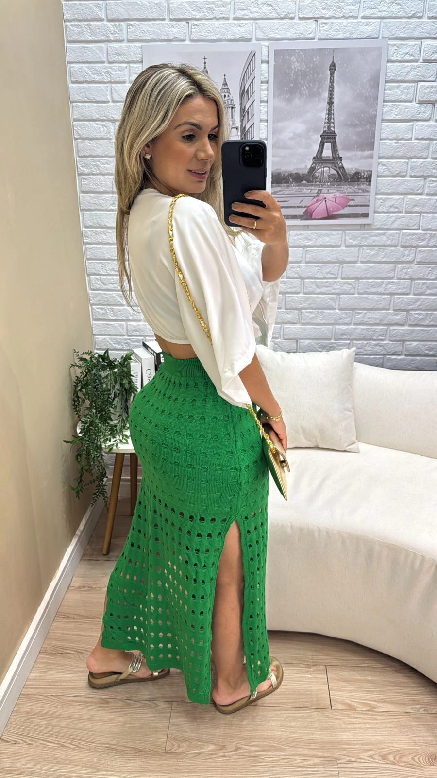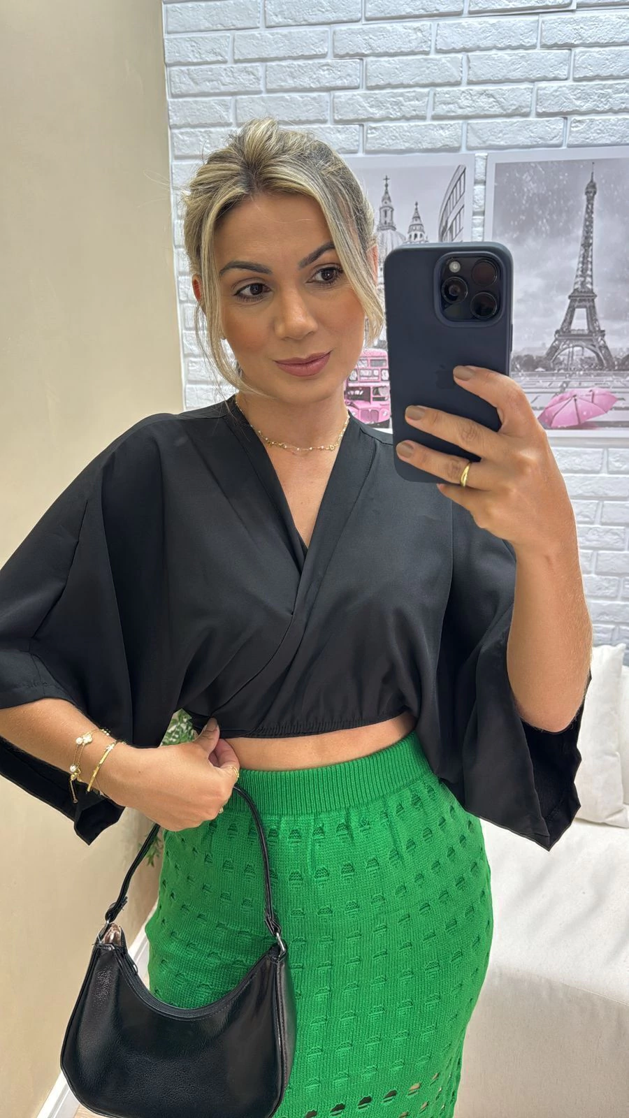 Além disso, o cropped possui elástico na parte inferior, garantindo uma melhor fixação ao corpo e maior praticidade na hora de vestir. Esta peça versátil veste do tamanho 36 ao 42, atendendo diferentes tipos de corpo com elegância.