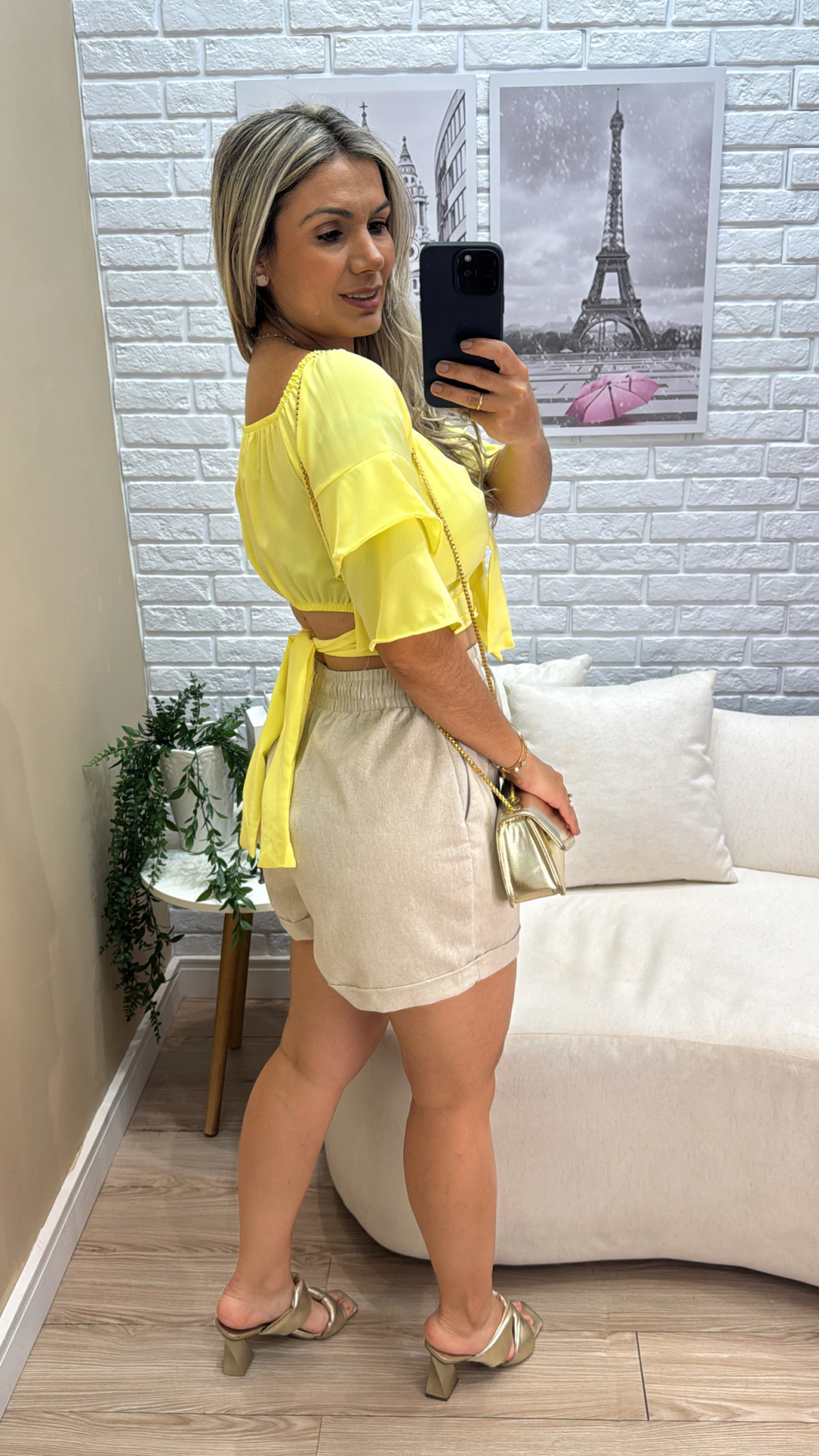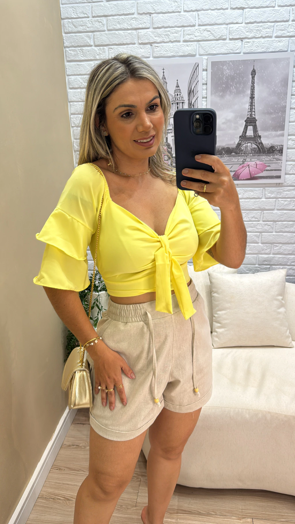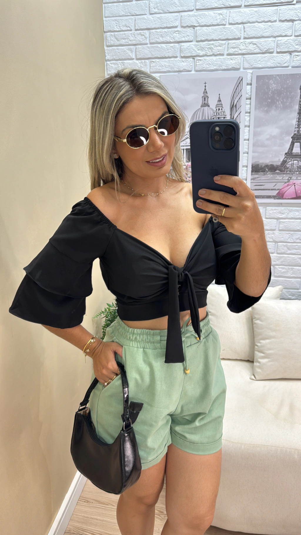 Crepe Fluith, mangas de babado, detalhe laço no busto e ajuste nas costas, use suas mangas na altura dos ombros. Veste tamanho P e M somente.