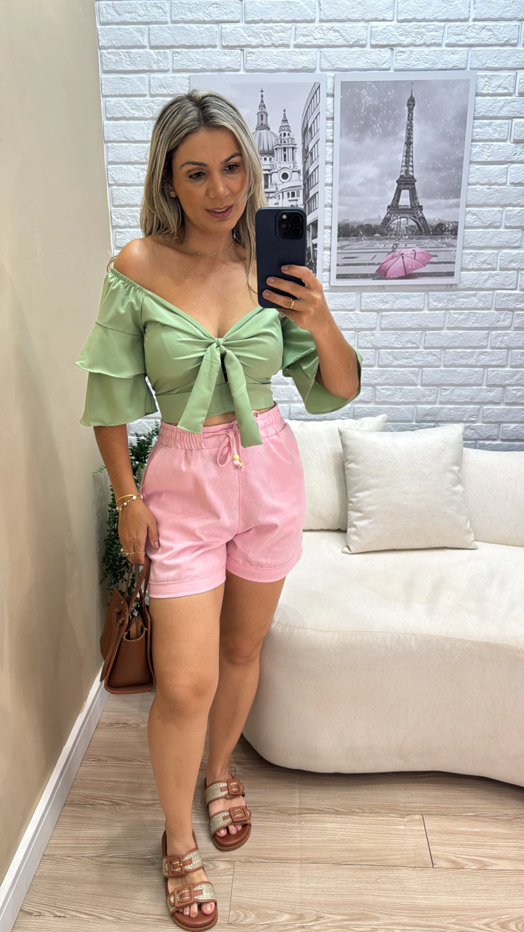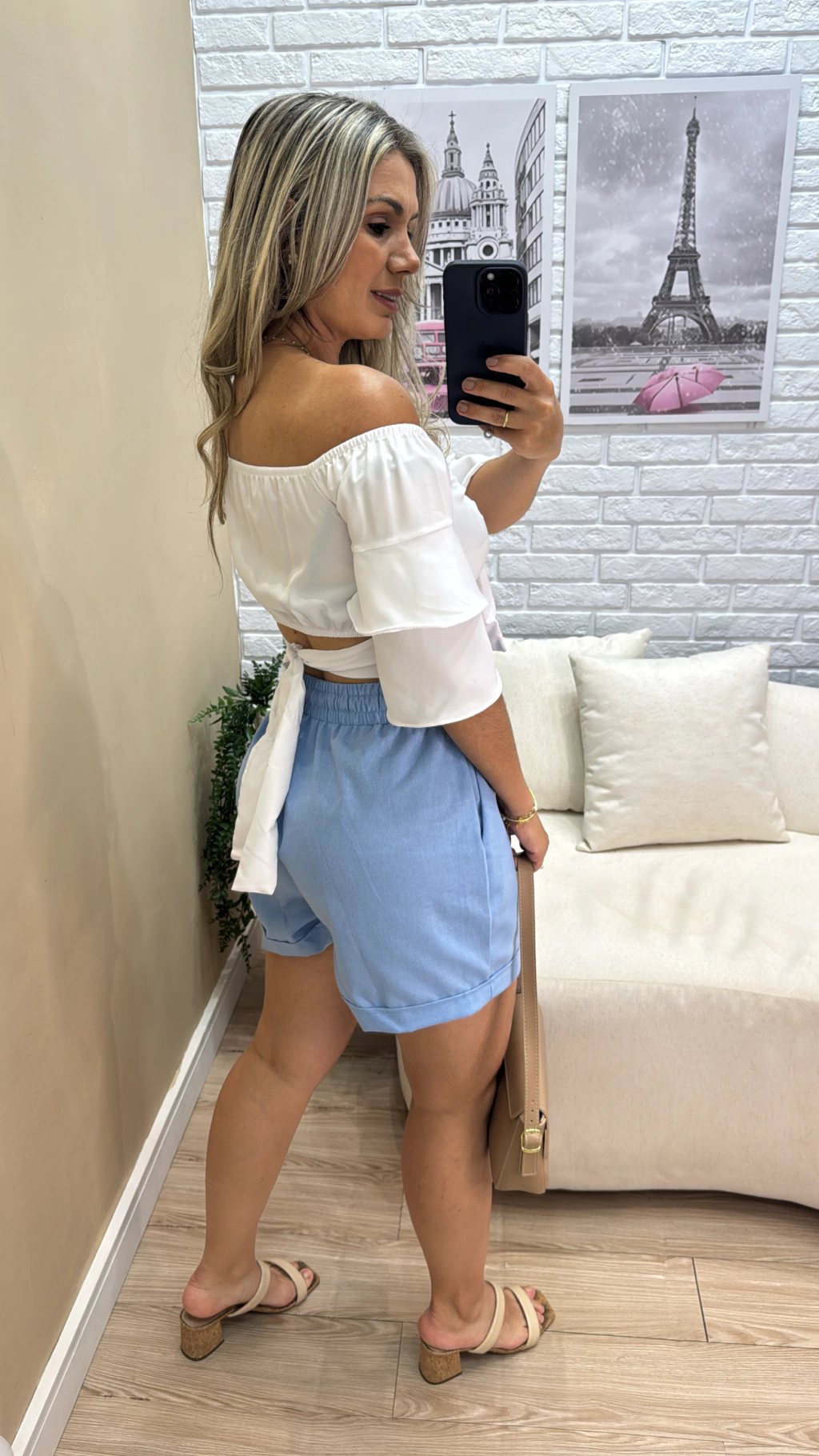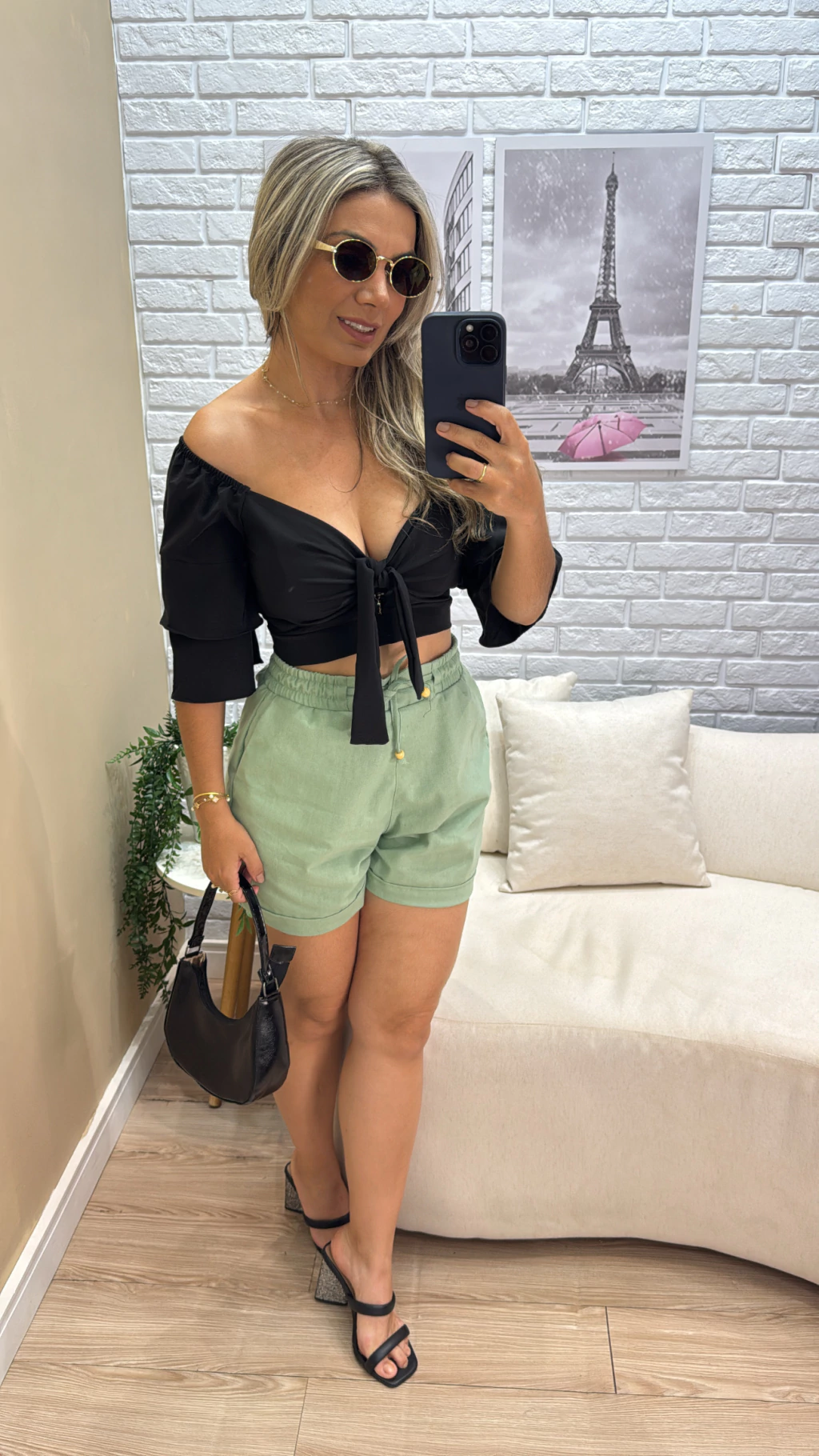 Crepe Fluith, mangas de babado, detalhe laço no busto e ajuste nas costas, use suas mangas na altura dos ombros. Veste tamanho P e M somente.