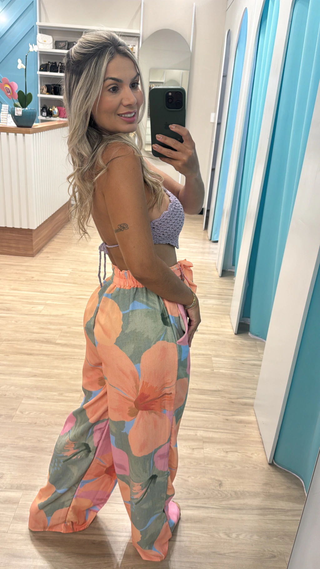 Linha, crochê, pontos fechados, frente única, forma pequena, veste somente P e M.
