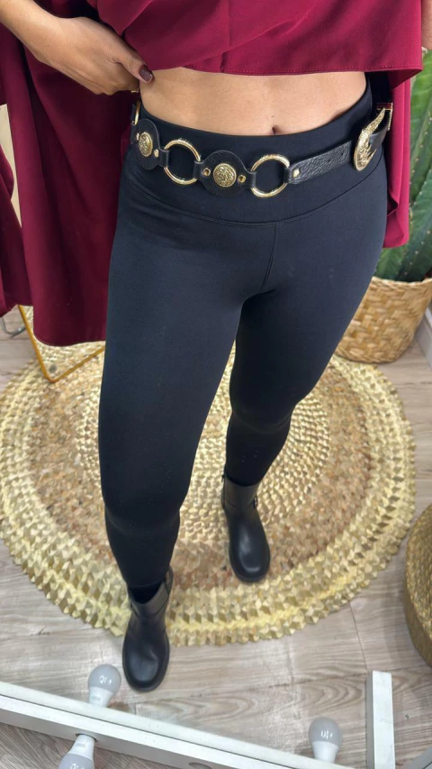 Em Poliamida peluciada, cós alto, quentinha, não fica transparente.