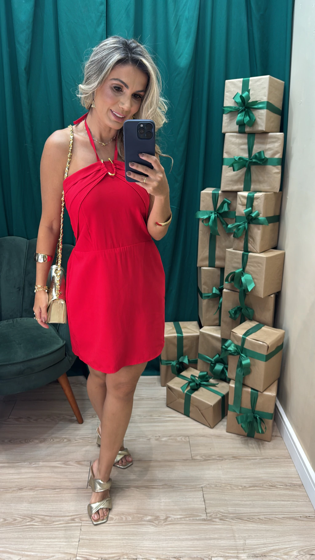 O design inclui amarração no pescoço, bojo para sustentação e fibela em acetato que adiciona um toque sofisticado. Vestido tanto na frente quanto atrás, com shorts por baixo, oferece praticidade e elegância para diversas ocasiões.