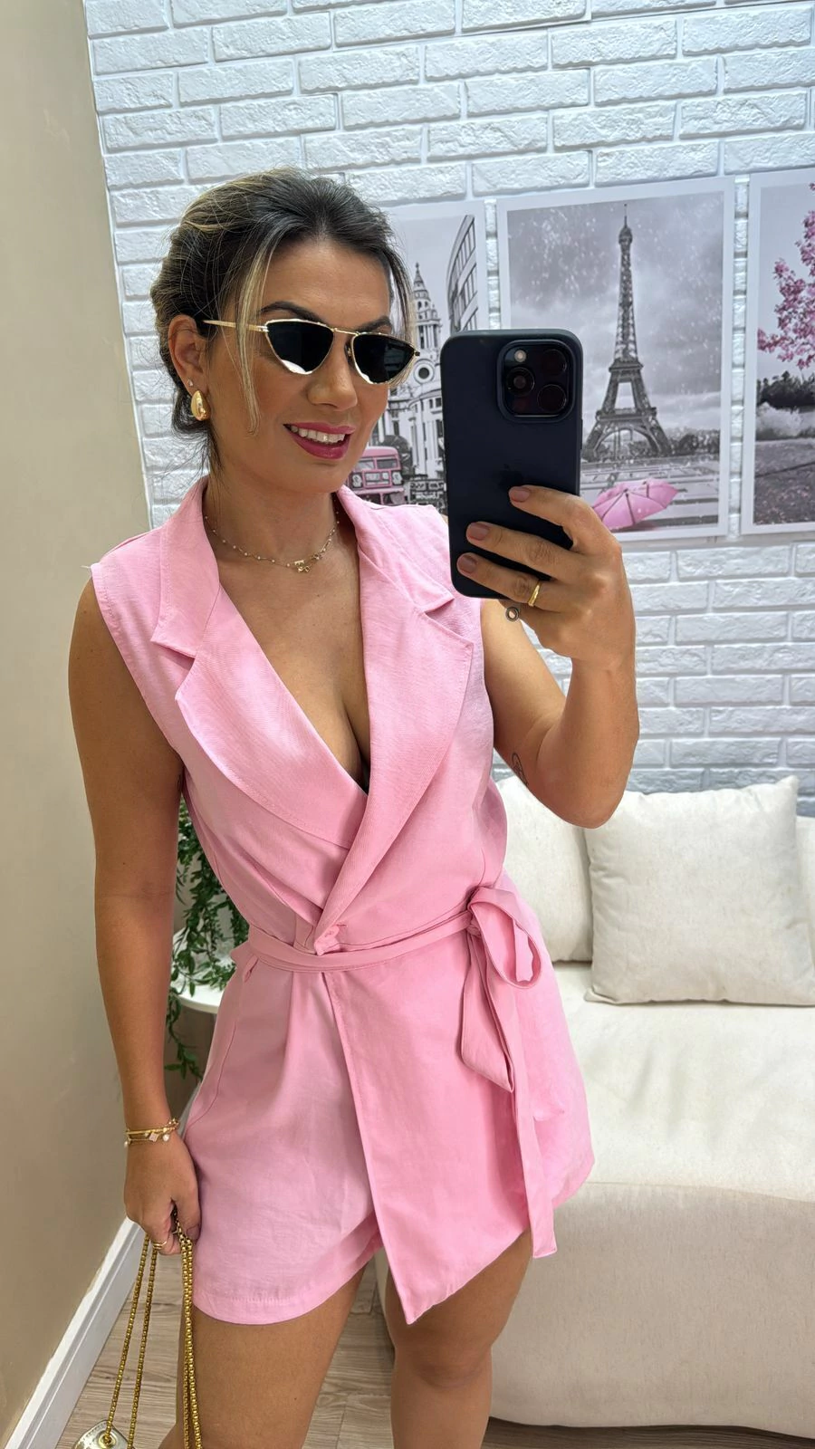 Este macaquinho acompanha uma faixa para amarração, que pode ser usada para ajustar a peça ao corpo, garantindo um caimento perfeito. Além disso, conta com passantes para cinto ou faixa, oferecendo versatilidade no visual.
