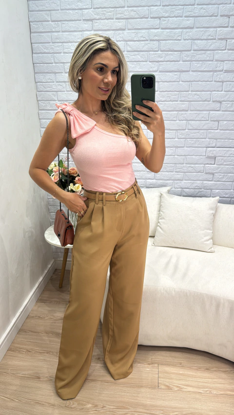 Tecido Twill, cós alto, passante duplo, comprimento excelente para mulheres alta, modelagem alfaiataria. Forma grande.