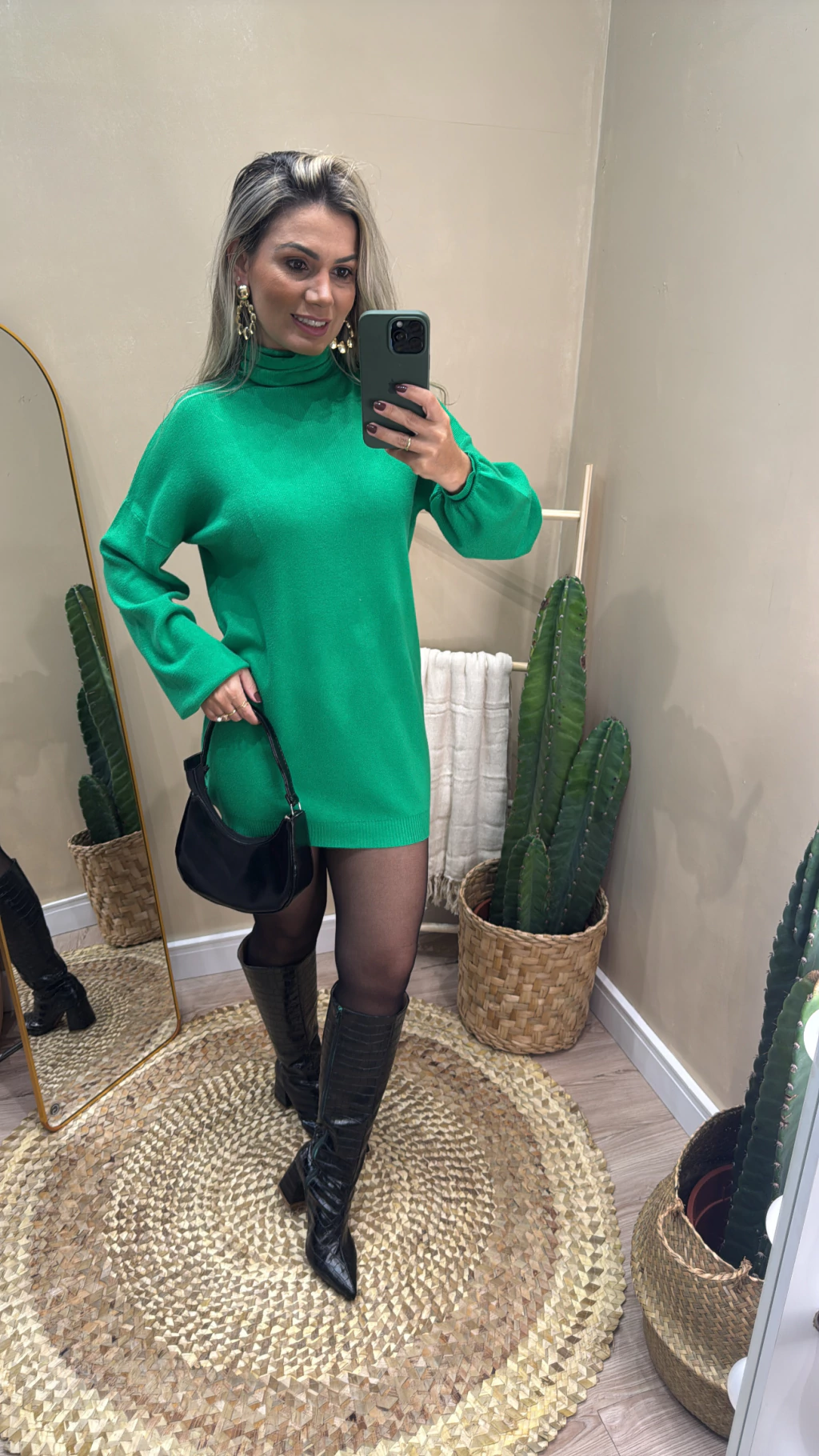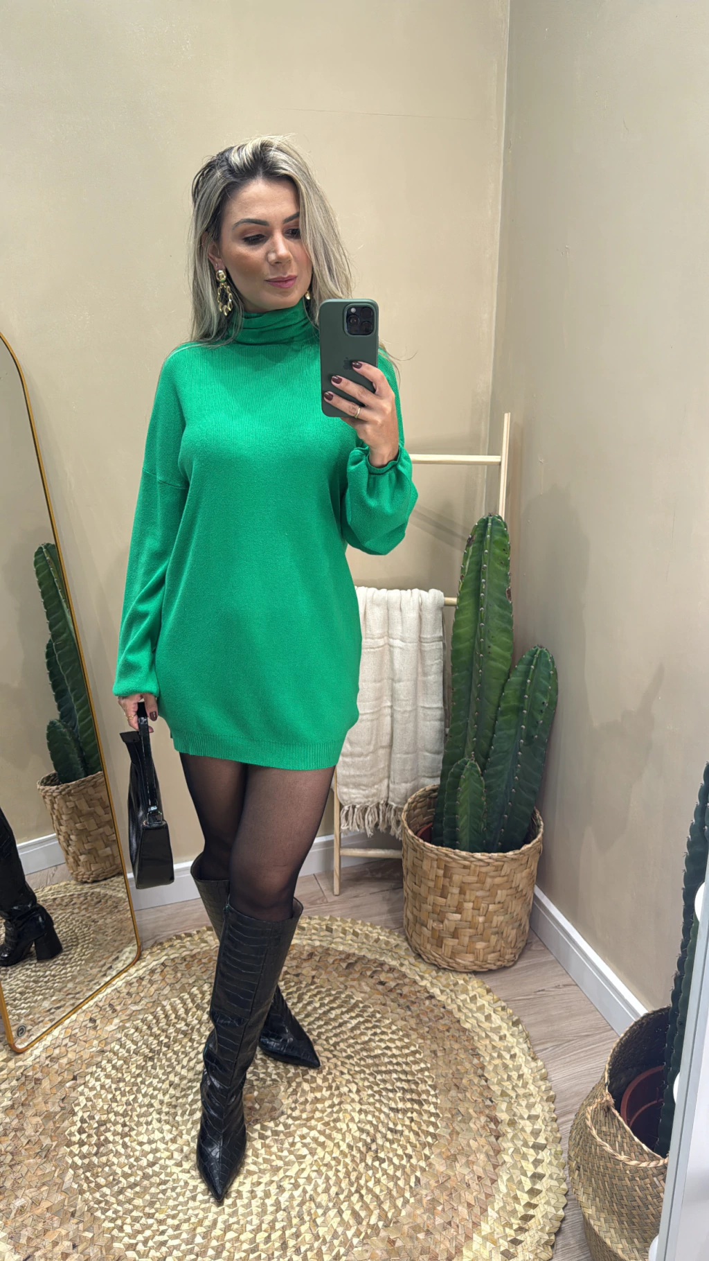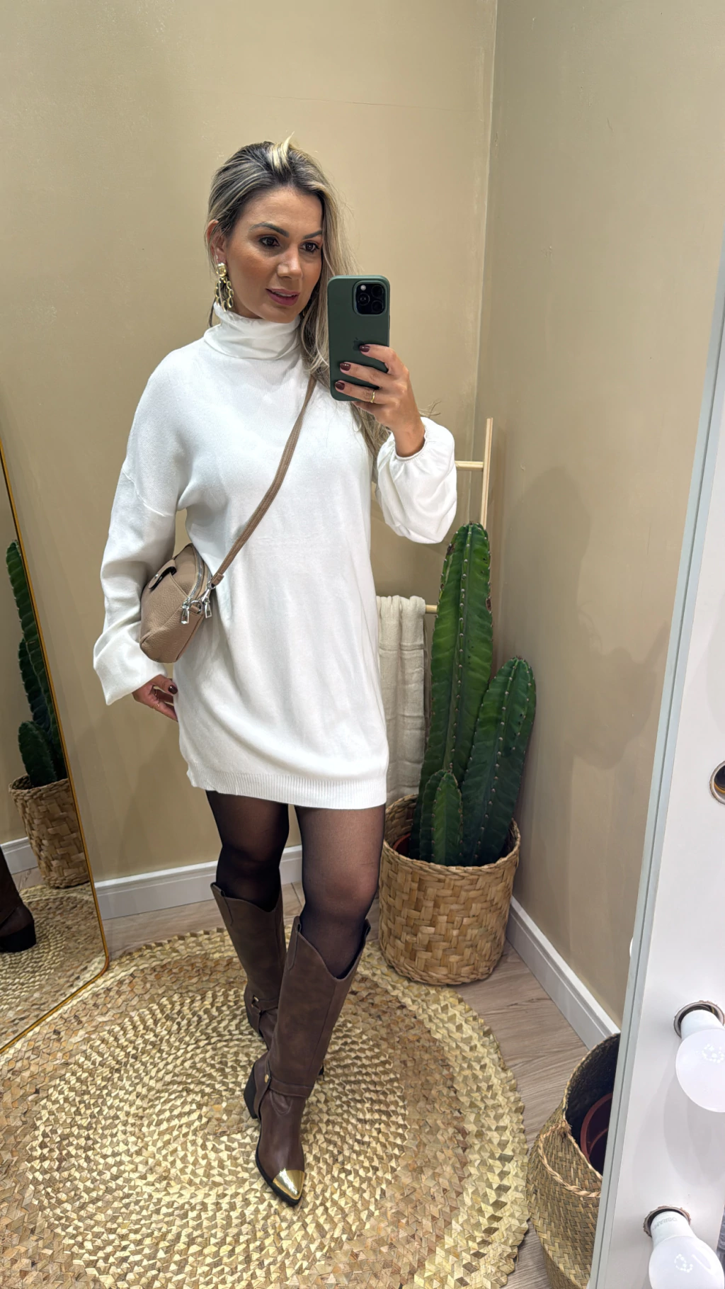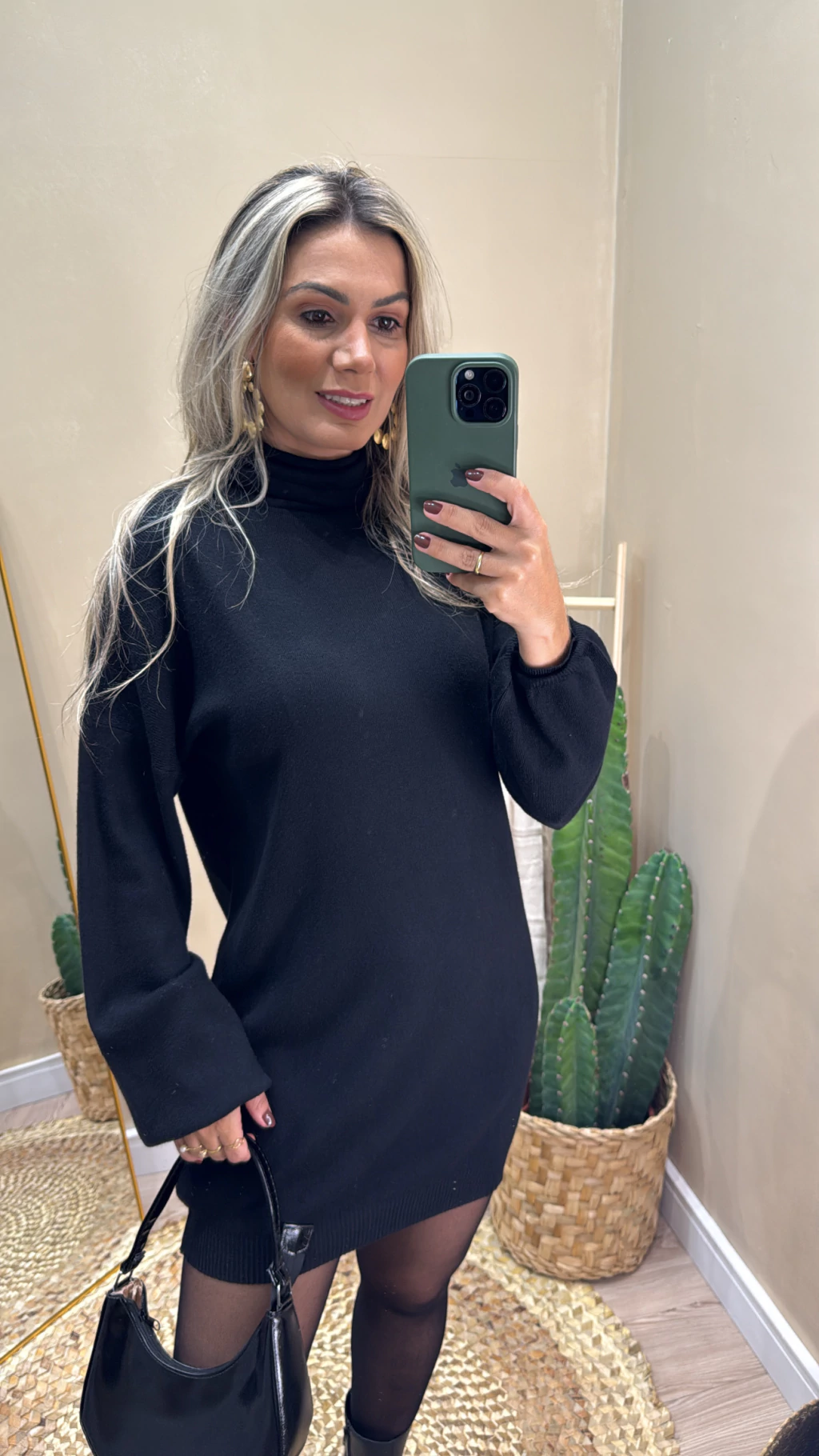Modal importado, gola role, alongada, mangas com punho, corte amplo, use sozinho ou com calça/shorts. Modelagem Minivest. Use com shorts por baixo, legging e meia calça.