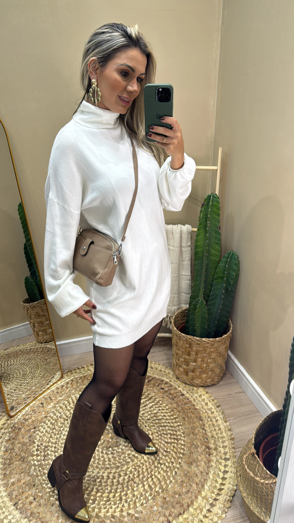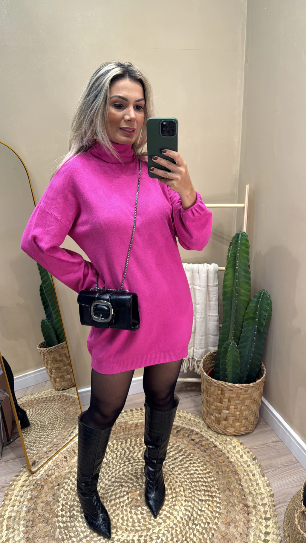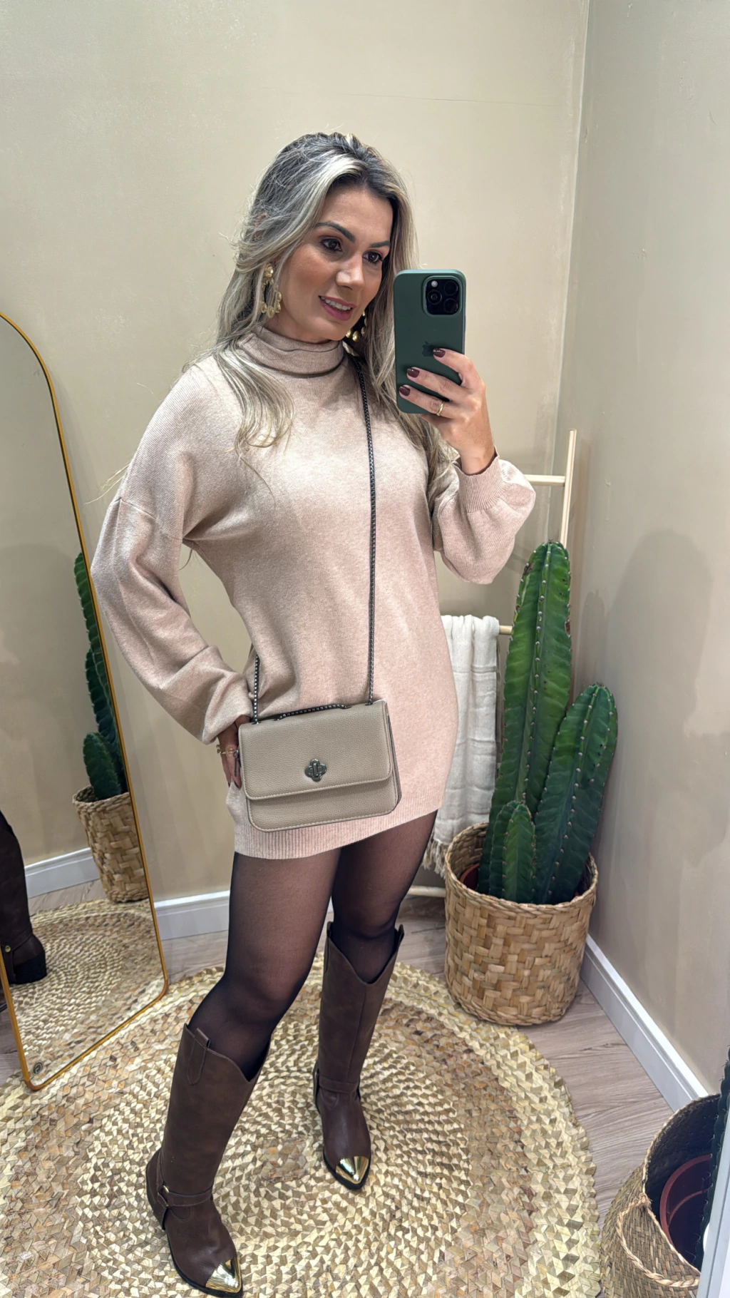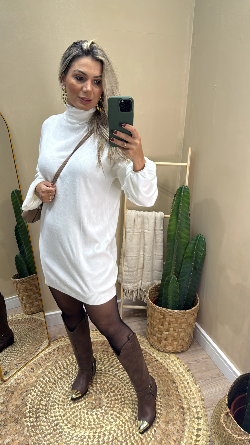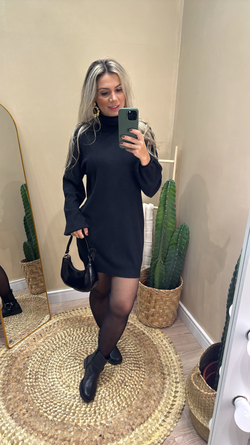 Modal importado, gola role, alongada, mangas com punho, corte amplo, use sozinho ou com calça/shorts. Modelagem Minivest. Use com shorts por baixo, legging e meia calça.