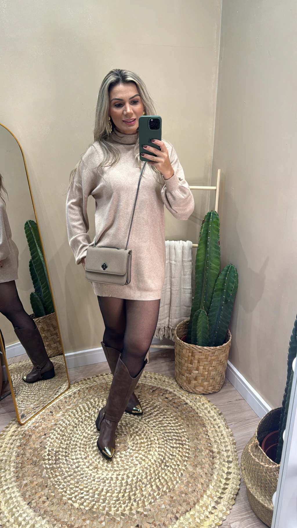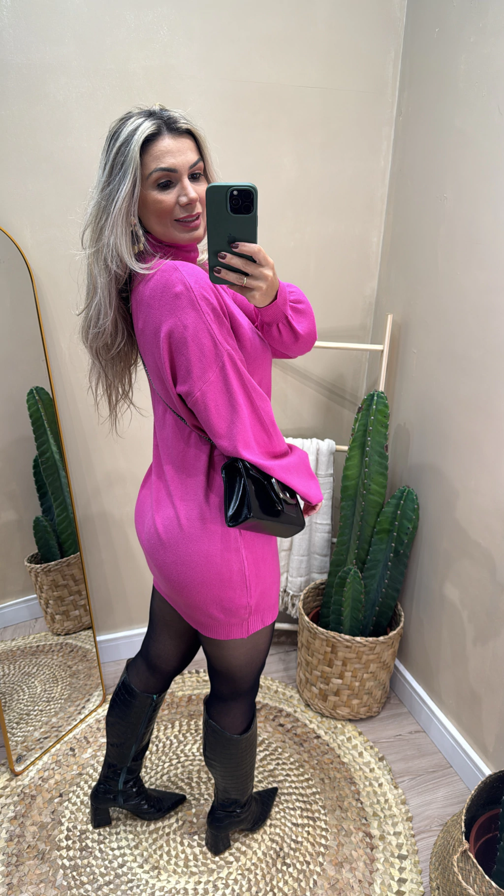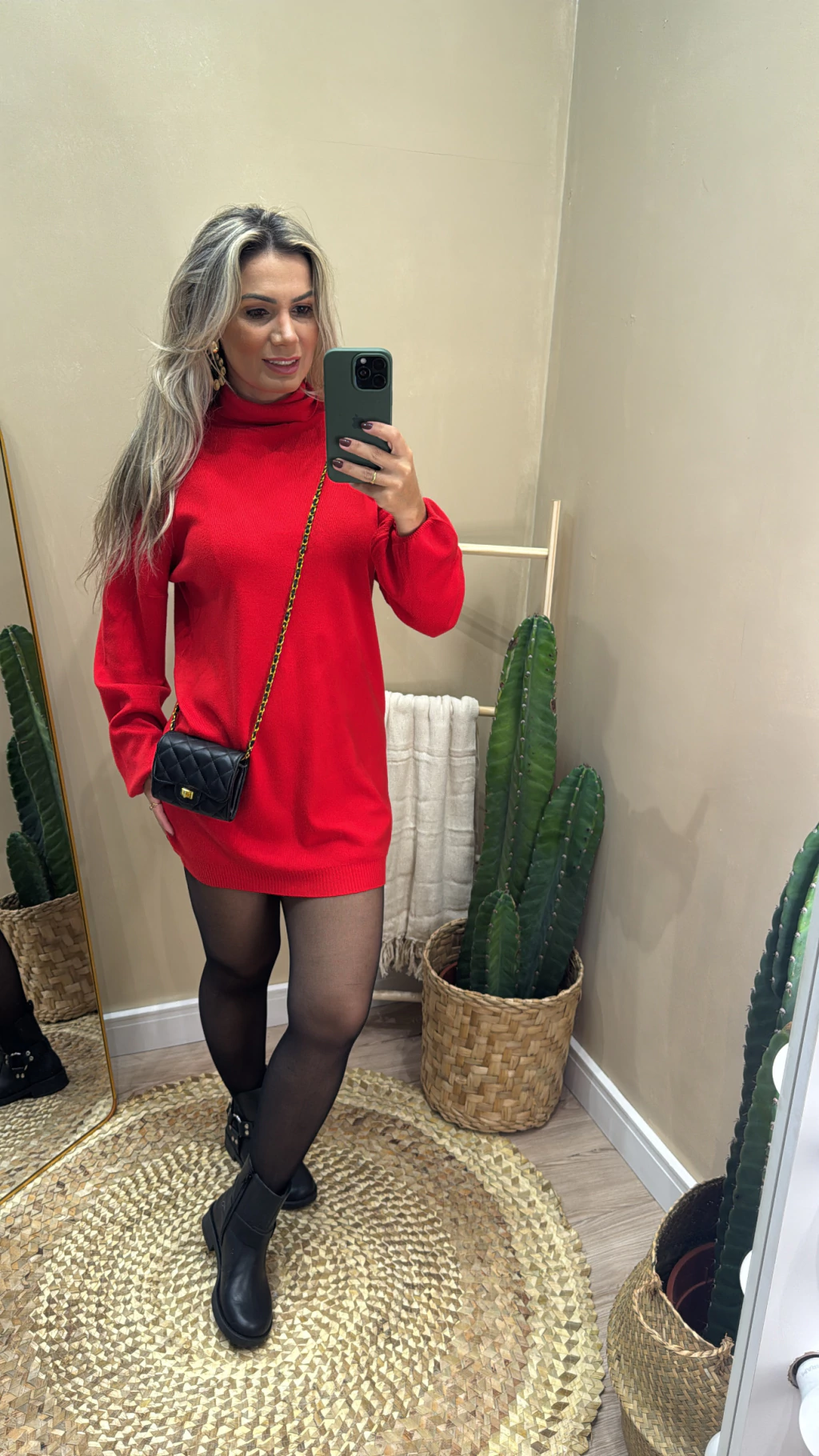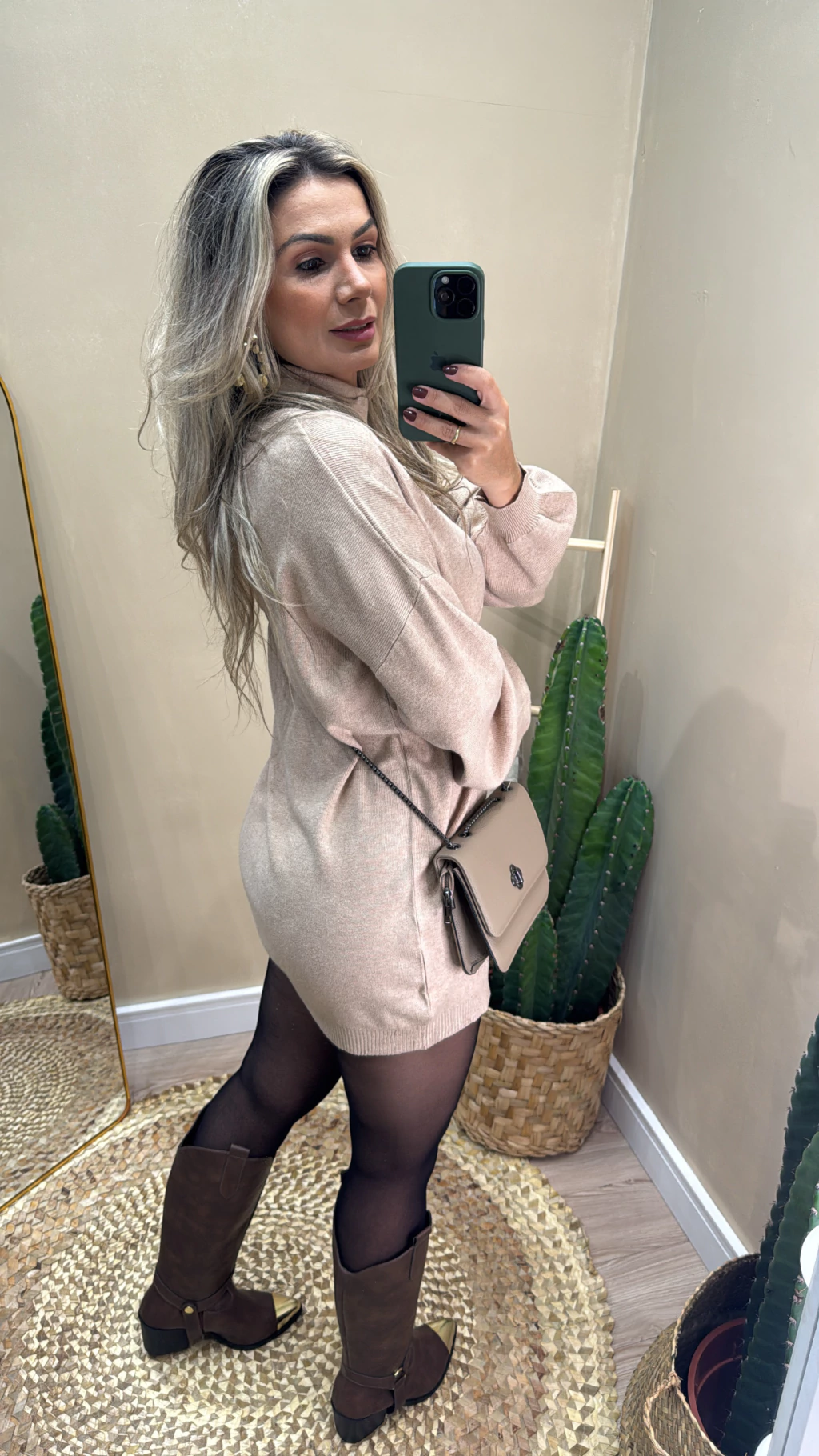 Modal importado, gola role, alongada, mangas com punho, corte amplo, use sozinho ou com calça/shorts. Modelagem Minivest. Use com shorts por baixo, legging e meia calça.