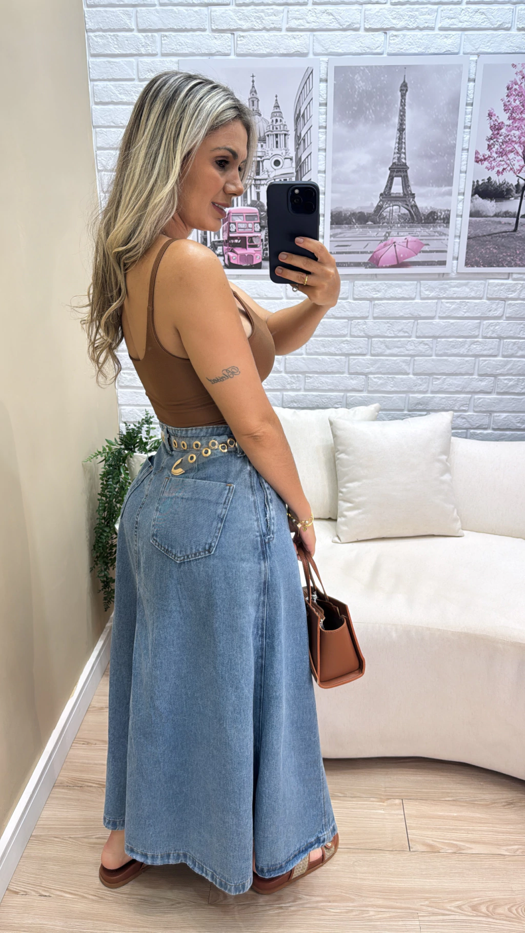Com modelagem de cós alto e evasê, essa saia valoriza a silhueta, proporcionando um visual elegante e moderno. Seu comprimento mídi/longuete é ideal para diversas ocasiões, do dia a dia ao trabalho.