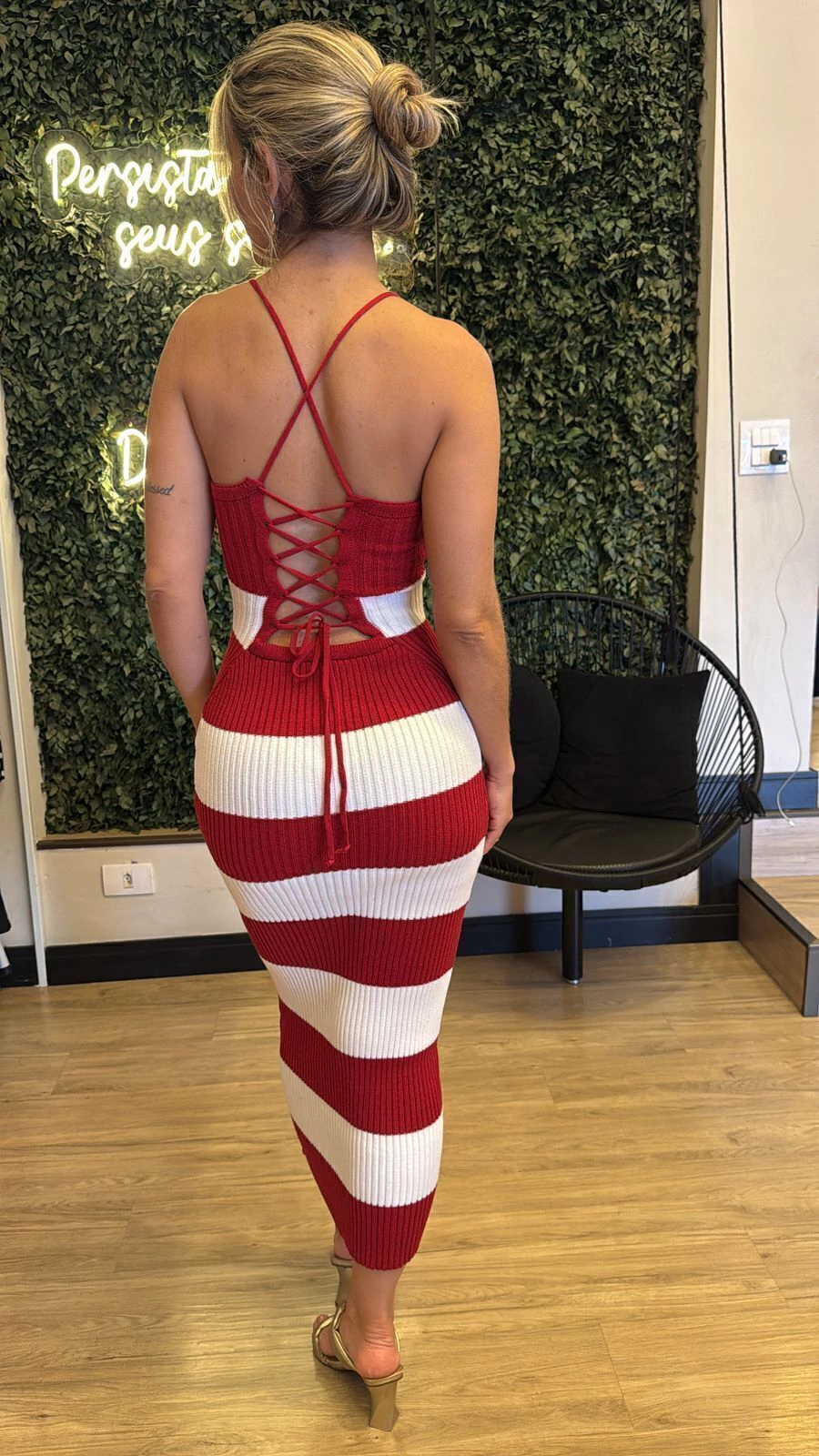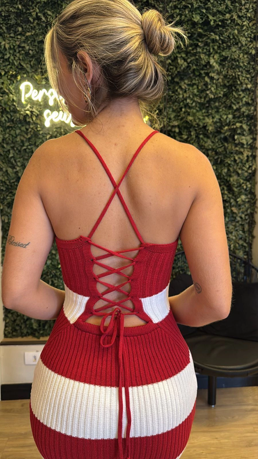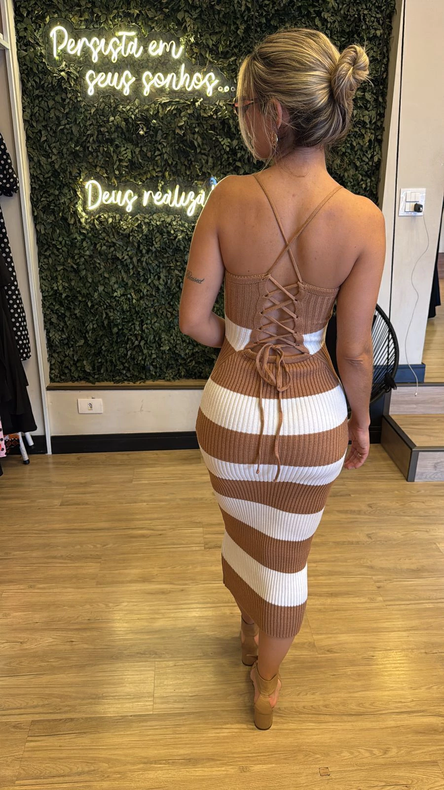 Seu diferencial está no detalhe trançado nas costas, que adiciona um toque único e elegante ao modelo. Sem fendas, ele veste do 36 ao 42/44, ficando coladinho e realçando as curvas com muita delicadeza.
